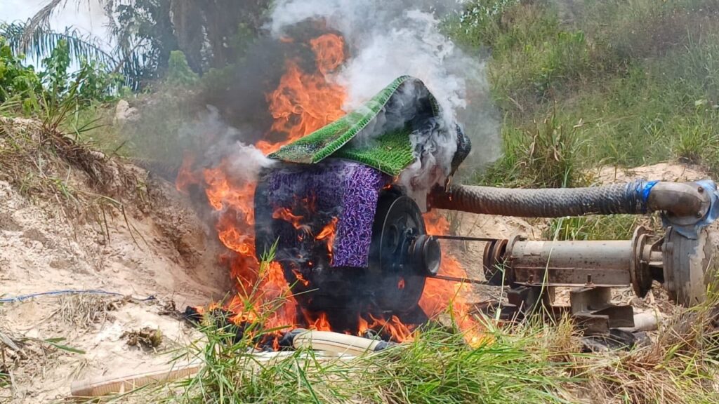 Nos sources poursuivent pour dire que l’opération a également conduit à la destruction de 230 mètres de tuyaux, 198 motopompes, 189 bassines, 126 bidons, 125 concasseurs, 110 pelles, 93 barils, 50 m de bâches, 40 pompes immergées, 61 tapis de lavage, 18 sluices, 12 tuyaux de raccordement, 7 planches de lavage, 6 rampes de lavage, 6 moulins, 5 cuvettes en plastique, 3 moteurs de concasseurs et plusieurs abris de fortune.